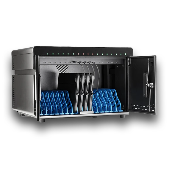 Space-efficient cabinets designed for high-volume charging and organized device management.